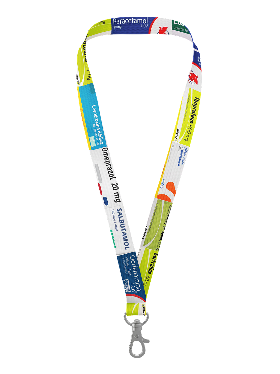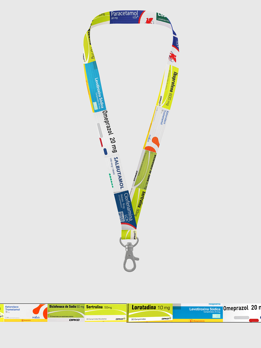 ¡Este lanyard es la receta perfecta! Con los medicamentos más usados y vendidos a los chilenos/as, este diseño no solo mantendrá tus llaves o credenciales seguras, ¡sino que también te hará destacar en cualquier lugar!