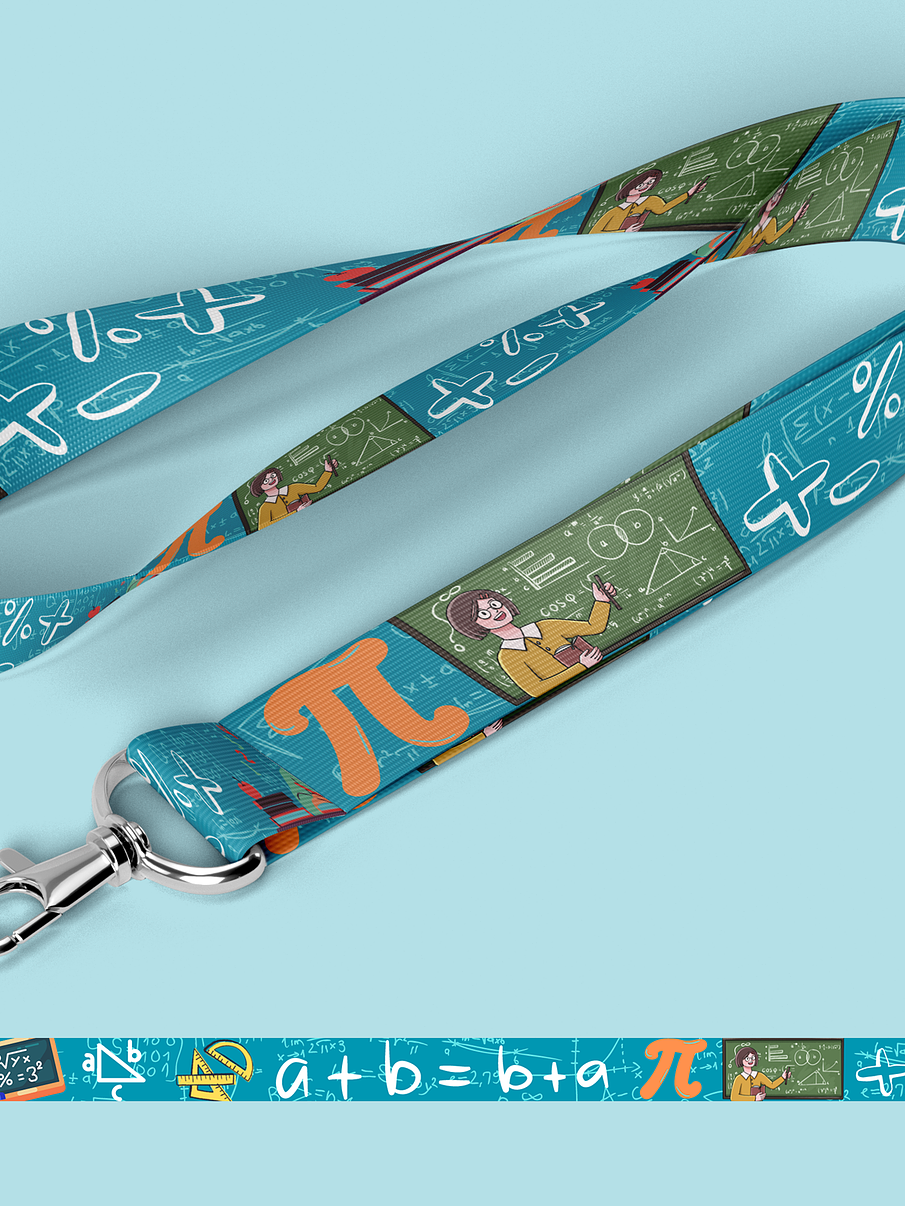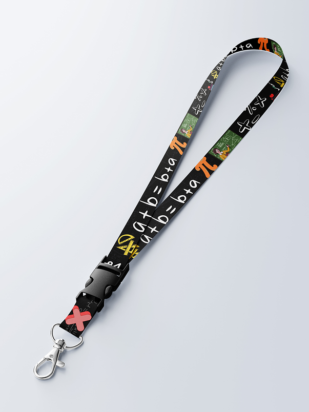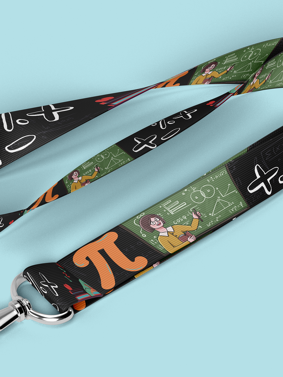 El lanyard con motivos de Profe matematicas es el accesorio perfecto para los profesionales y entusiastas de las matematicas. Este lanyard está diseñado con colores vibrantes y estampados temáticos que representan elementos y símbolos relacionados con la industria