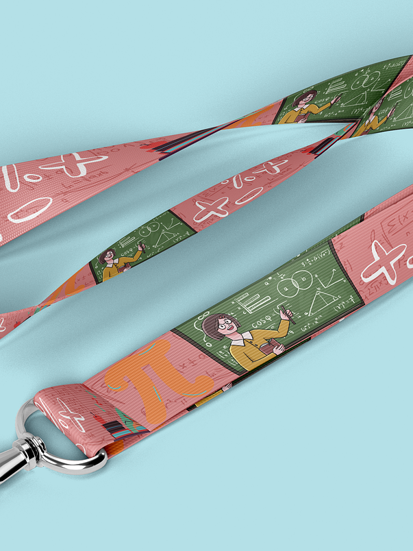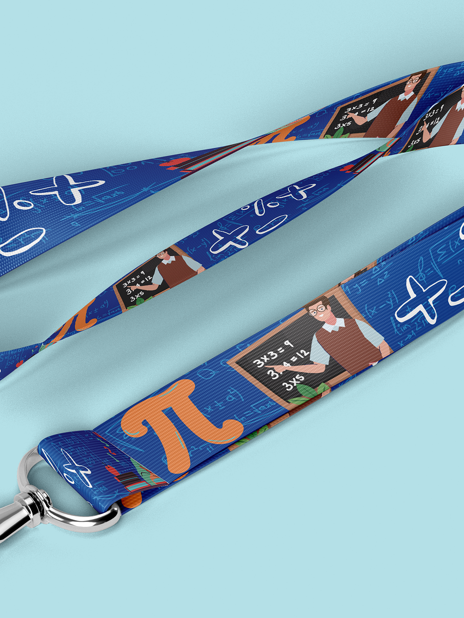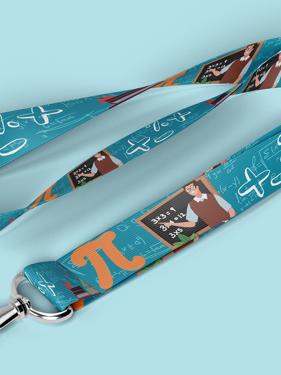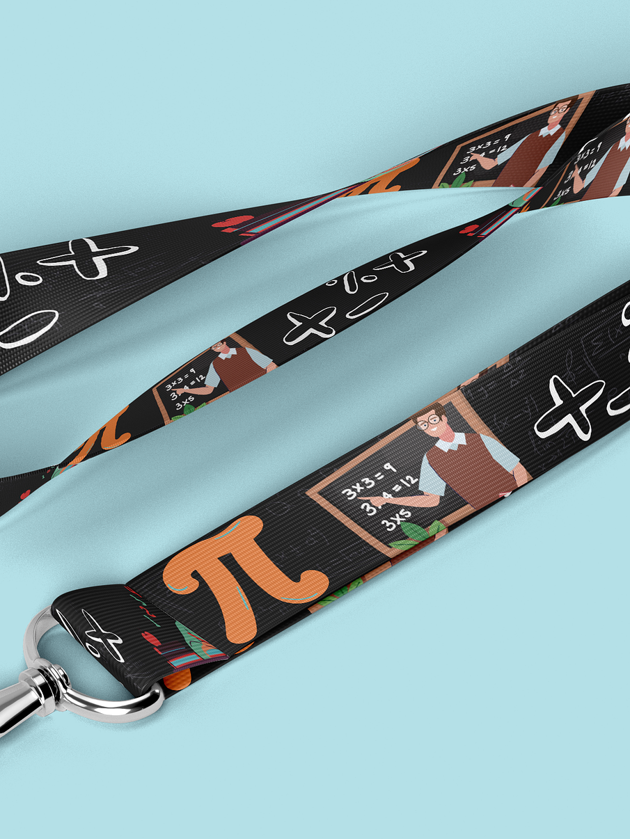 El lanyard con motivos de Profe matematicas es el accesorio perfecto para los profesionales y entusiastas de las matematicas. Este lanyard está diseñado con colores vibrantes y estampados temáticos que representan elementos y símbolos relacionados con la industria